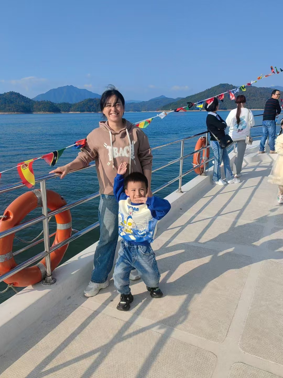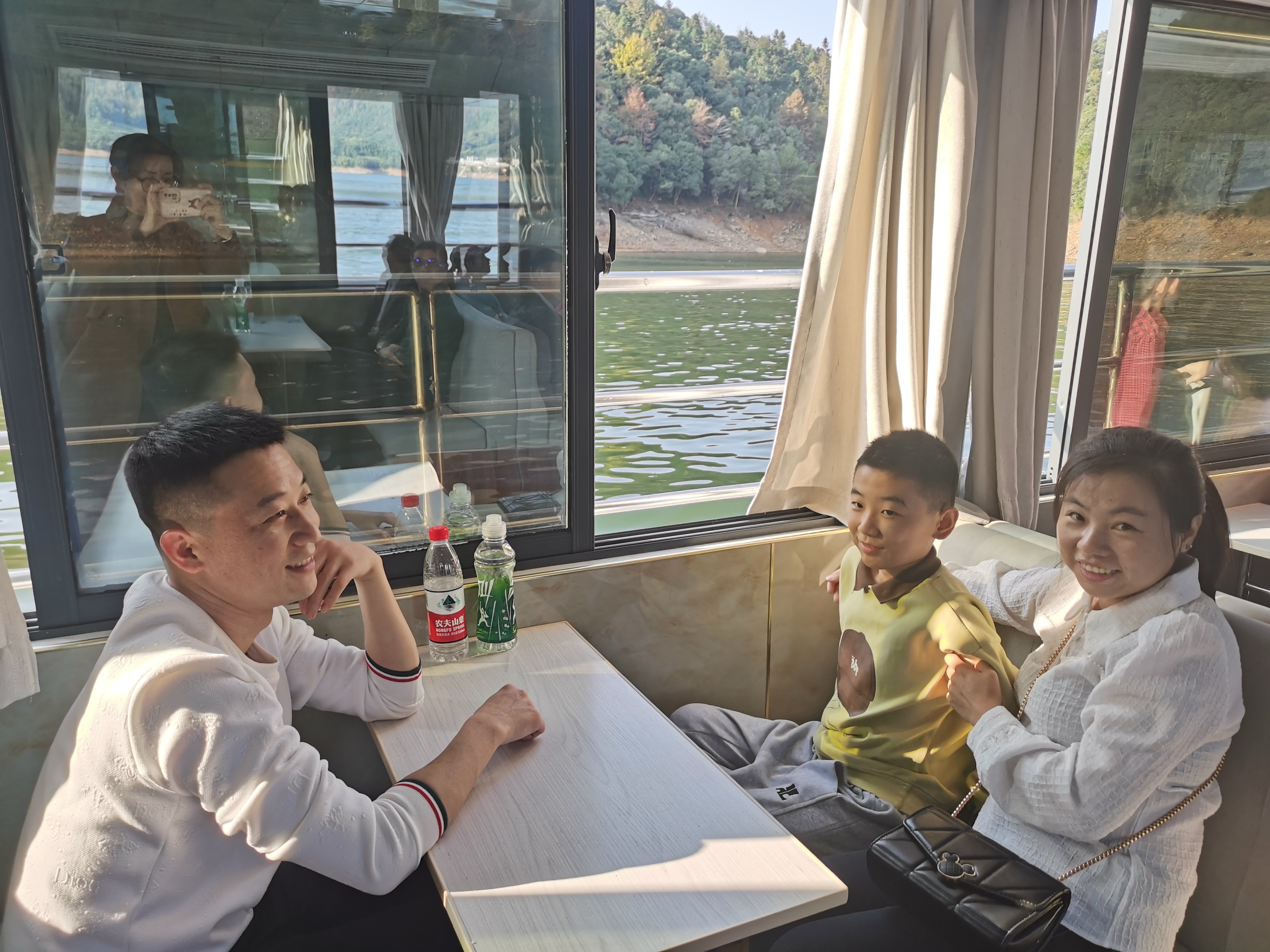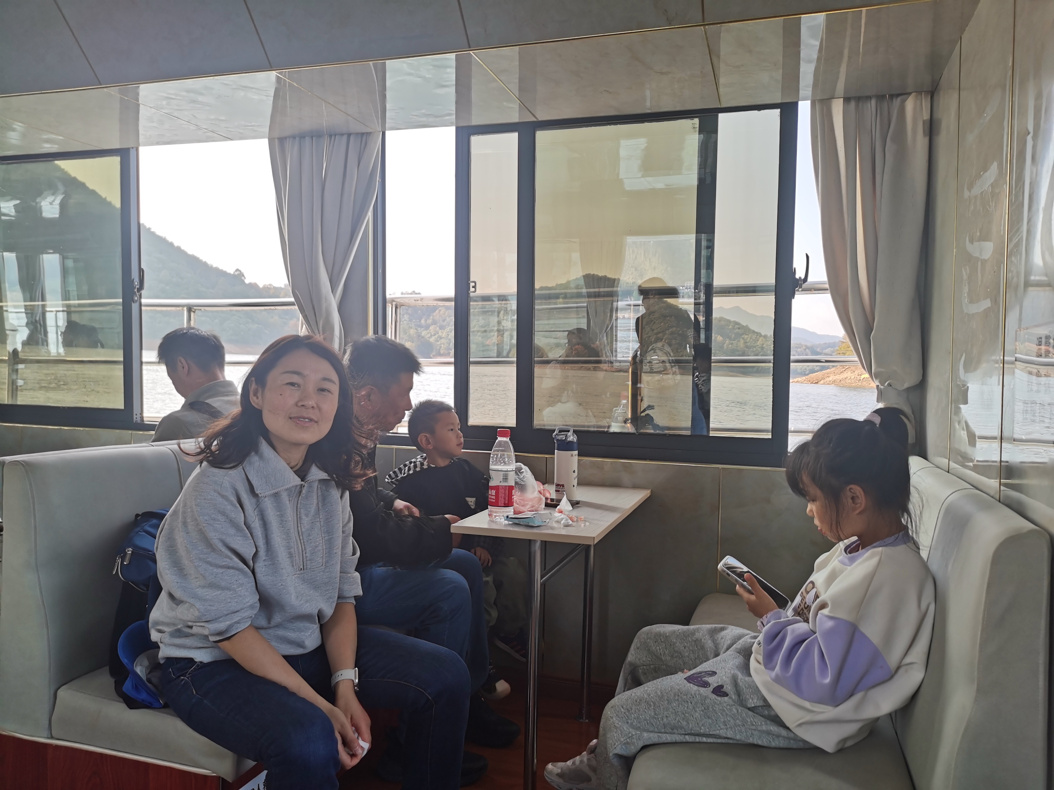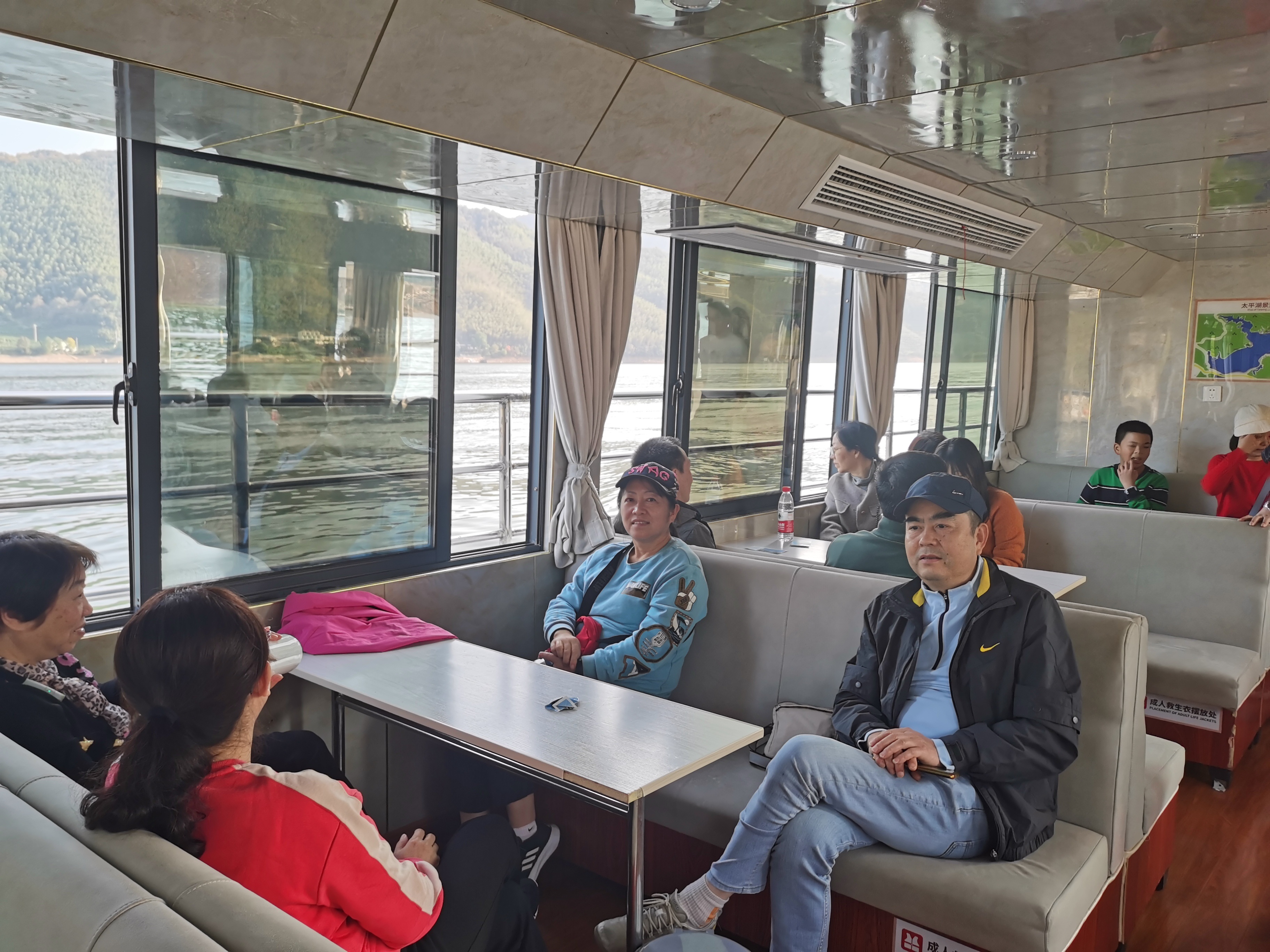 在享受丰盛的午餐之后,我们前往第二站的太平湖景区,坐上游船,一路欣赏散落如珠的岛屿风光。湖区青山环绕,湖水清澈,岛屿秀丽,龙窑寨、猴岛、天下太平城各有千秋,如诗如画。